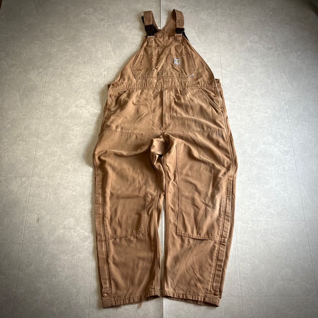 カーハート carhartt キャメルカラー ダブルニー ダック地 オーバーオール ⚫︎Made in メキシコ ⚫︎サイズ XLサイズ ウエスト 59cm 後ろ中心〜股上 77cm 股下 74cm モモ幅(股下10㎝位置) 41cm 裾幅 25.5cm 全体的に穴あきございます、一部分薄く汚れあります、古着慣れされてる方は良いフェード感が出ていて気に入って頂けるかと思います。 画像にてご確認下さい。 他にも、adidas.NIKEなどスポーツブランドから、軍モノ、カモフラパンツ、リアルツリー、カーハートなども取り揃えております。 ぜひご覧下さい!