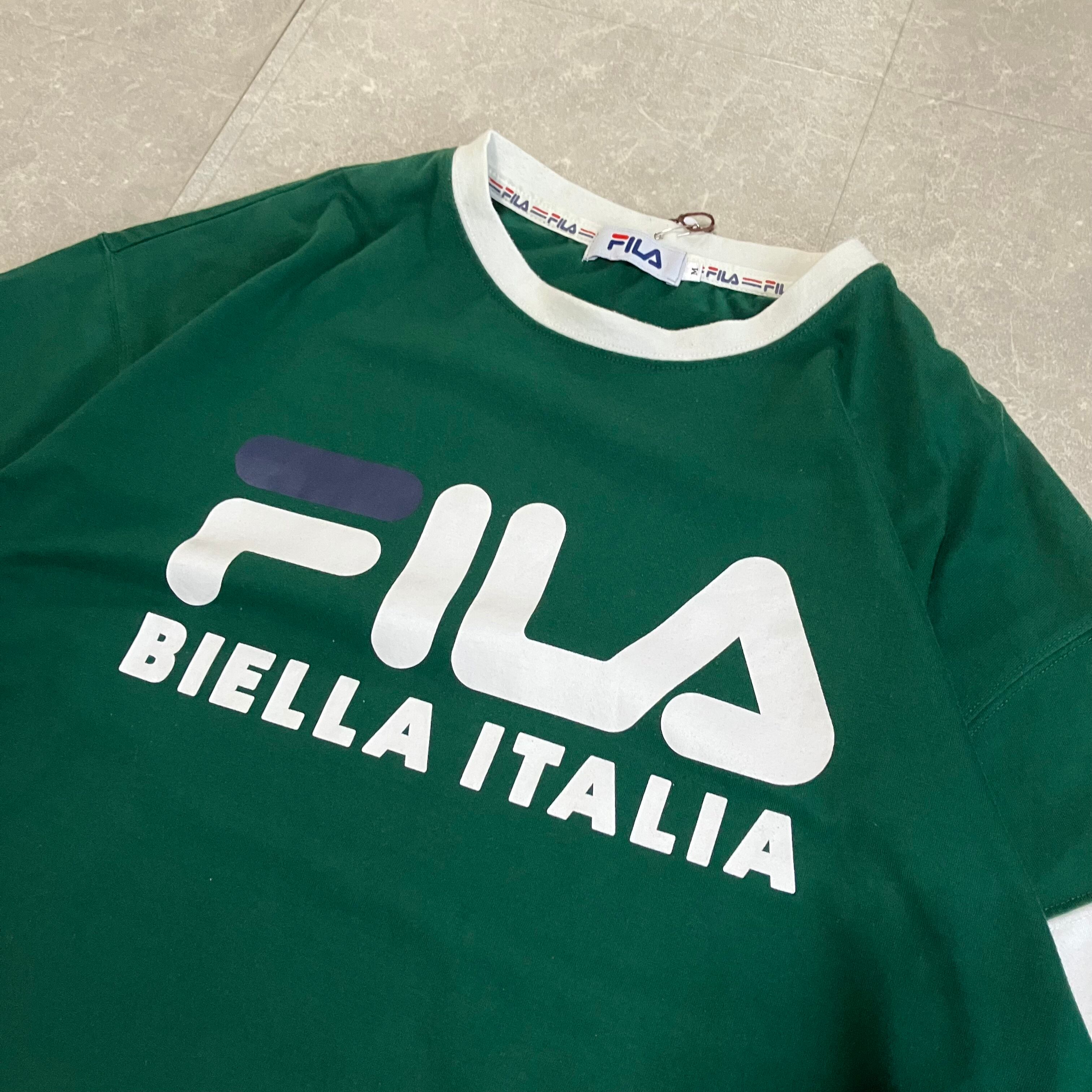 sale!FILA ビッグシルエットライン切替Tシャツ グリーン