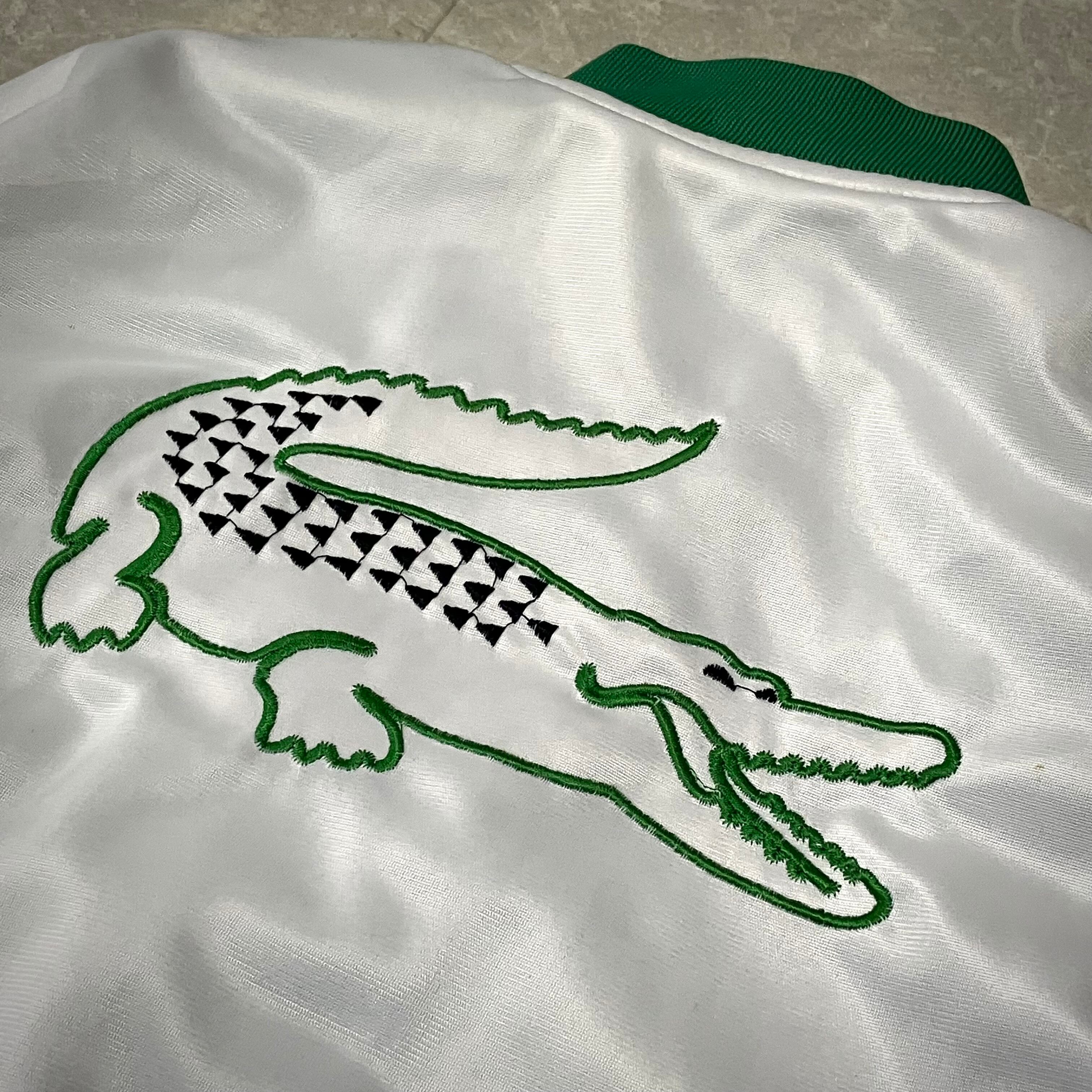 ホワイトとグリーンのトラックジャケット、バックに大きく刺繍ロゴ付き。