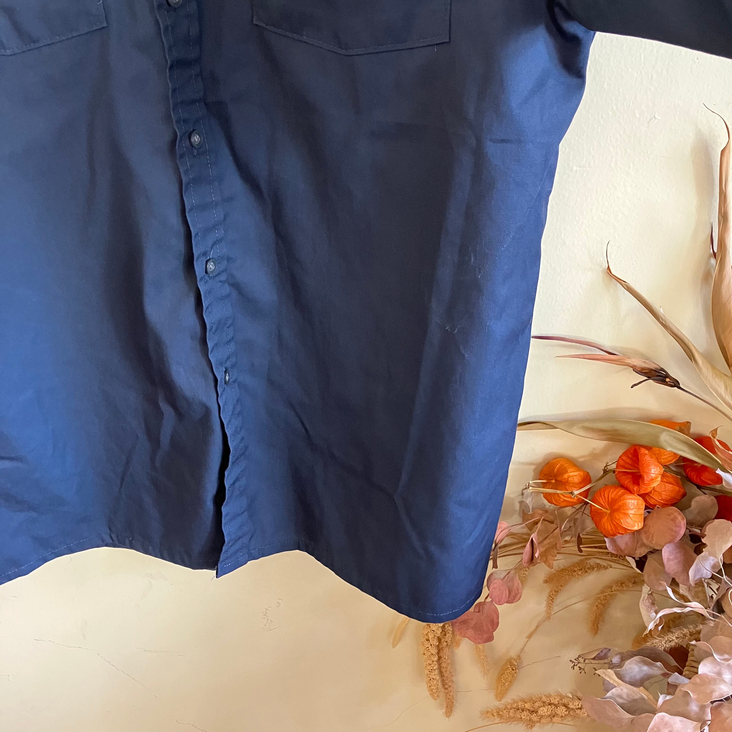 ネイビーのBIG BILL製ワークシャツ、XLサイズ、2つの胸ポケット付き。