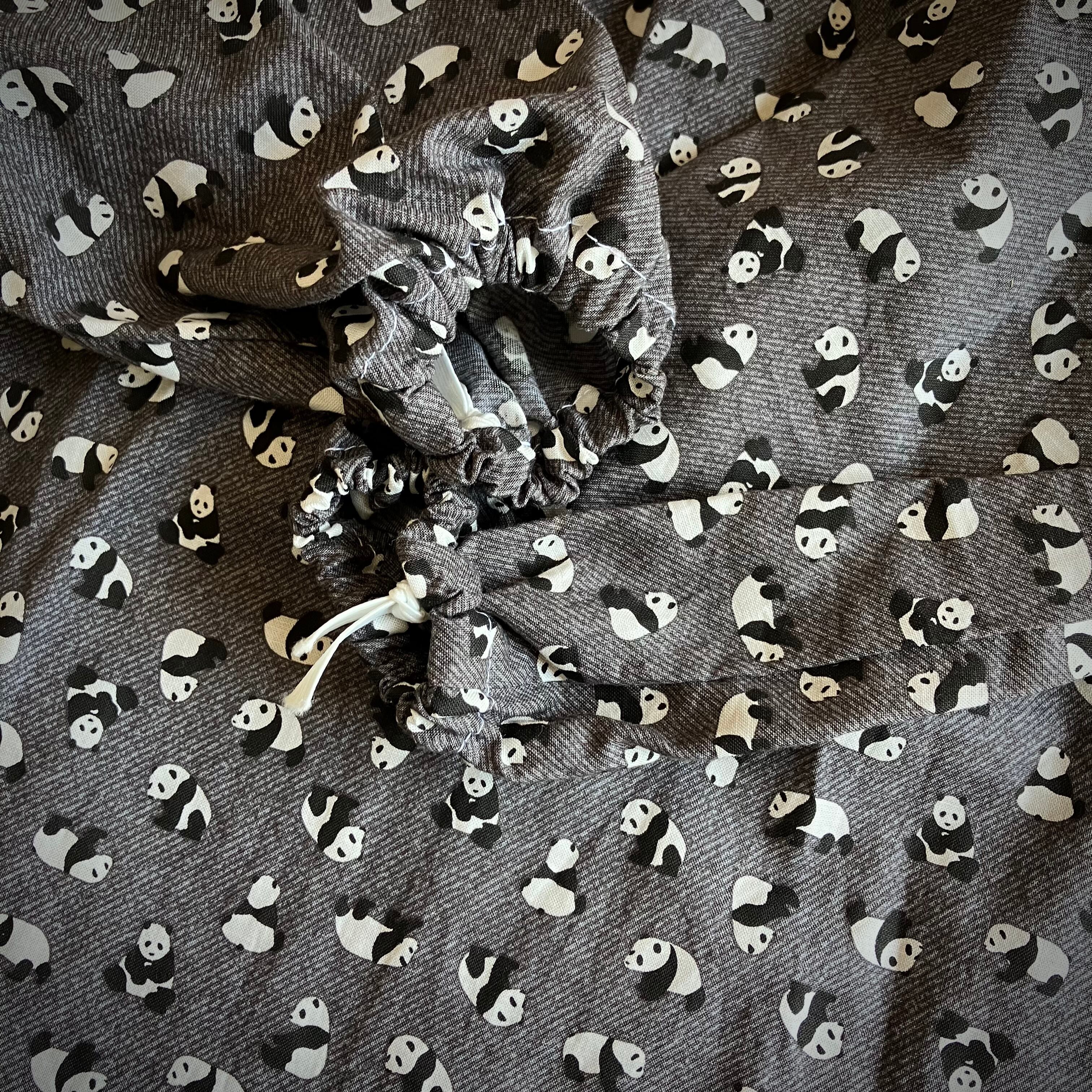 首、袖部分のゴムはだいたいの幅で結んであるので、お子様に合わせて調節して下さい♫