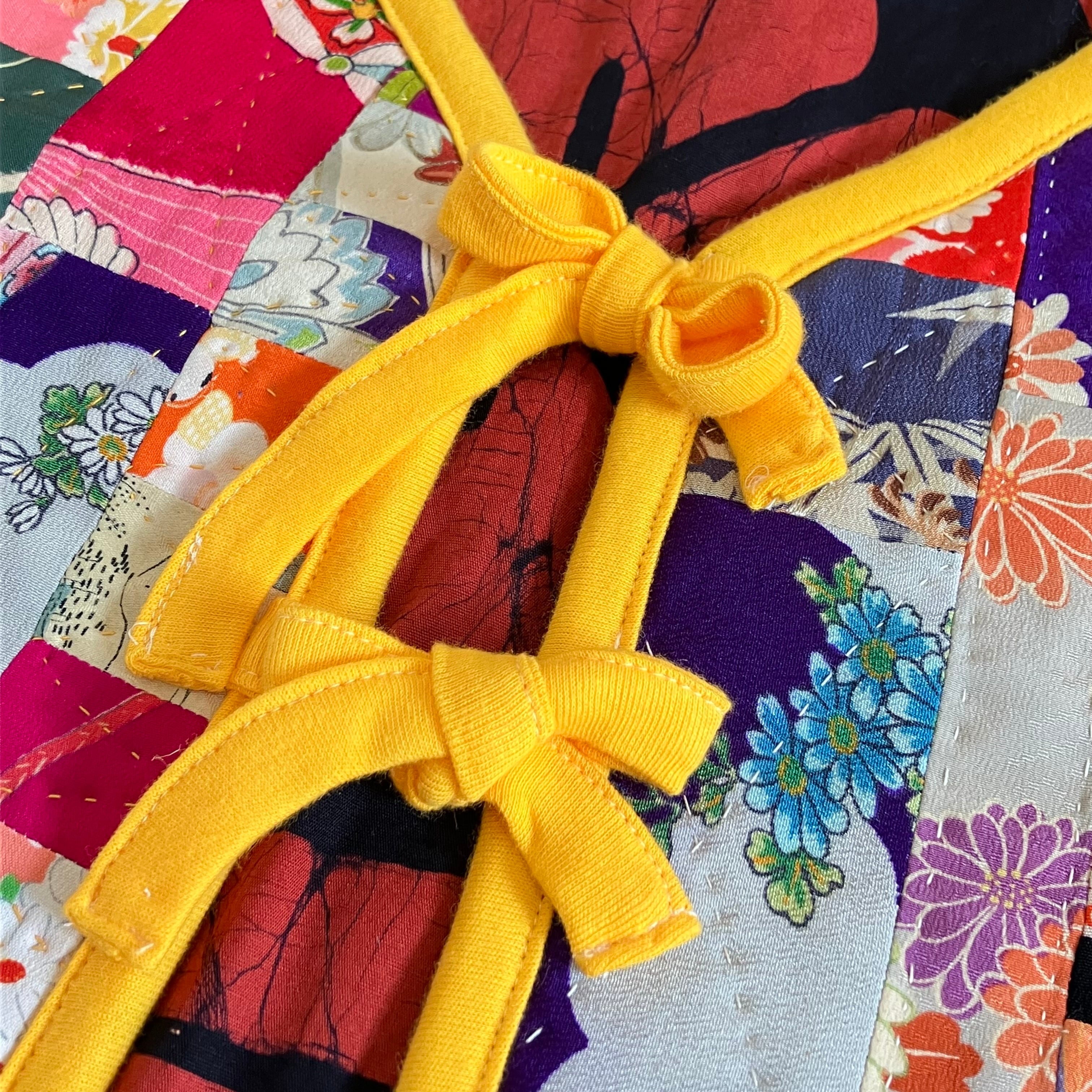 着物生地を複数枚使用し、パッチワークにしてキルティングし、