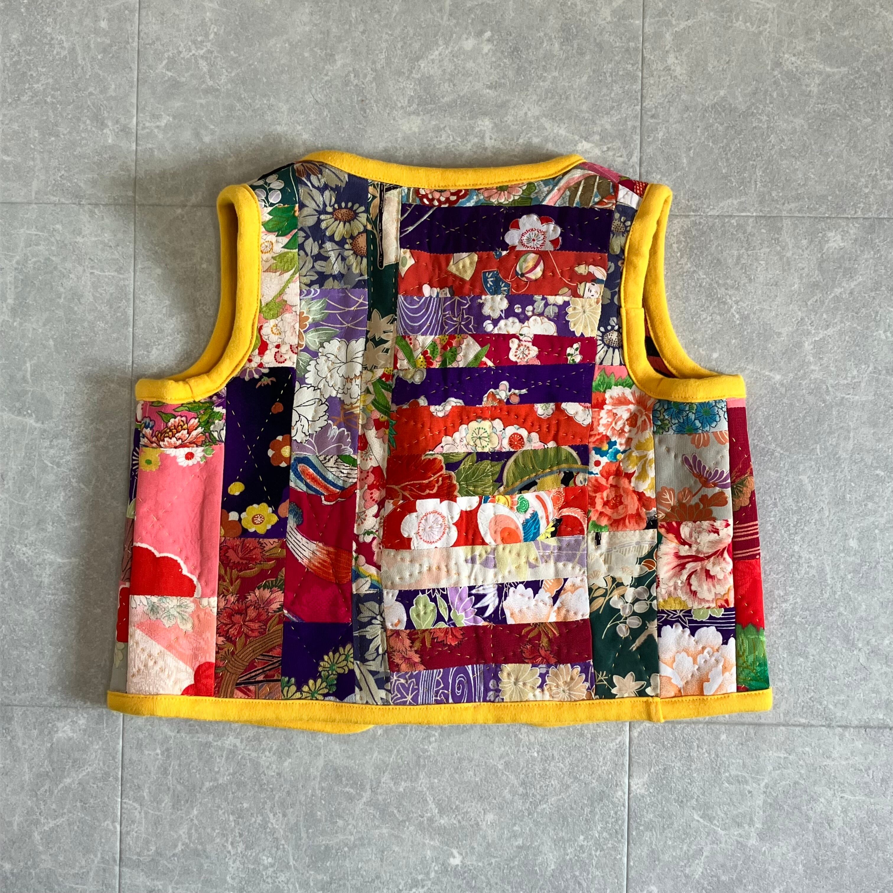 古布かすり パッチワーク刺し子風 中綿入りベスト ちゃんちゃんこ ハンドメイド
