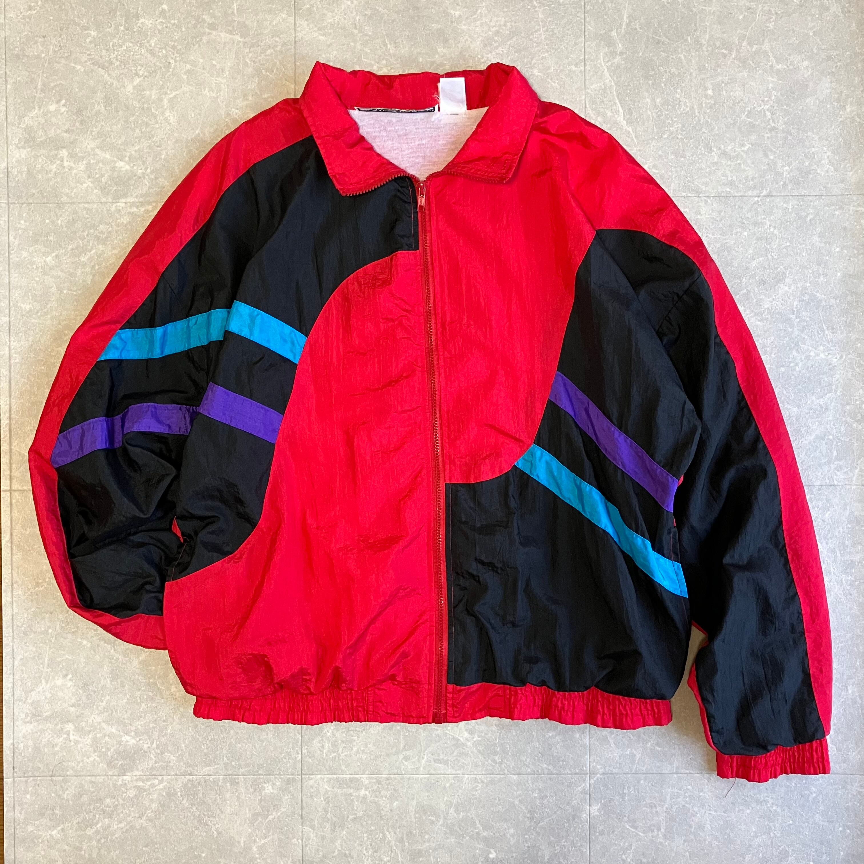 レディースジップアップナイロンジャケット 赤 Lサイズ