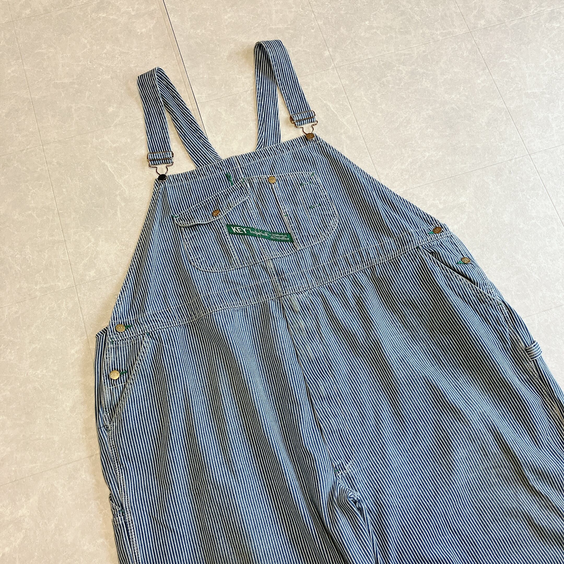 KEYのヒッコリーストライプのオーバーオールです。