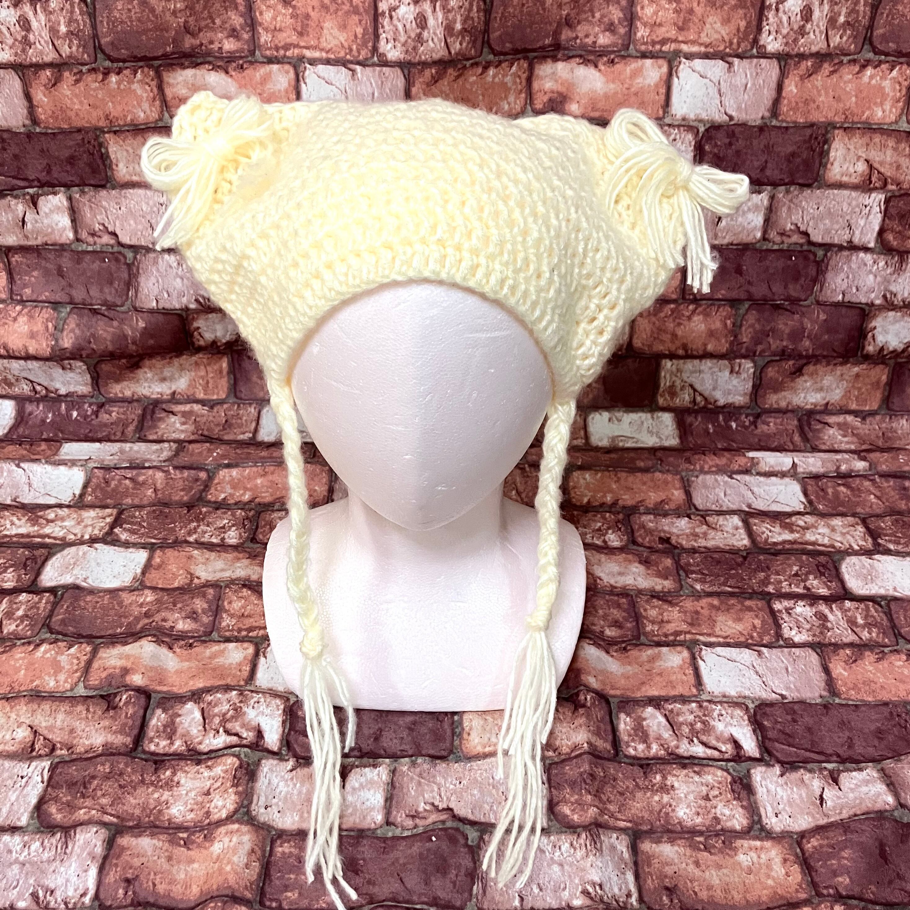 冬物sale!!ハンドメイド ホワイトカラー猫耳ニット帽